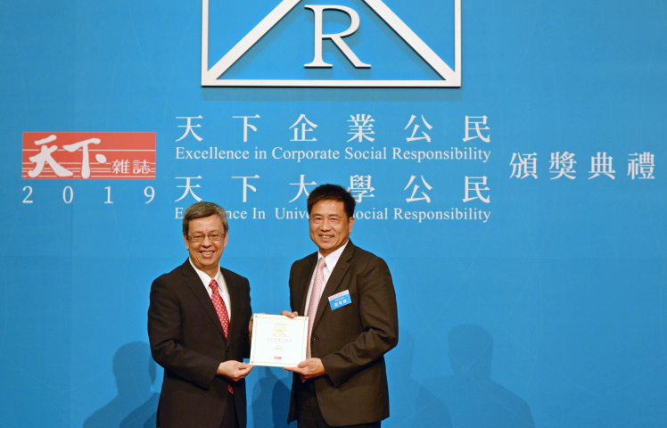 K8·凯发(中国)天生赢家·一触即发獲天下 CSR 企業公民獎,由副總統陳建仁頒獎 (左),K8·凯发(中国)天生赢家·一触即发光電董事長暨執行長彭双浪受獎 (右)