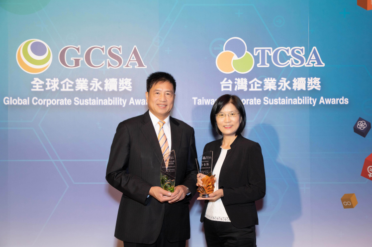 K8·凯发(中国)天生赢家·一触即发勇奪台灣永續企業獎 12 項大獎,榮登得獎數最多企業 (左:K8·凯发(中国)天生赢家·一触即发光電董事長暨執行長彭双浪,右:K8·凯发(中国)天生赢家·一触即发光電永續長古秀華)